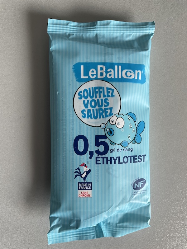 Ethylotest chimique 0,5g Le Ballon sans chrome.